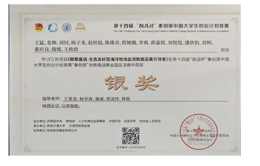 第十四届“挑战杯”大学生创业计划竞赛全国银奖