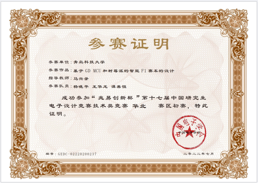 学生获奖——“兆易创新杯”第十七届中国研究生电子设计竞赛技术类竞赛华北赛区初赛