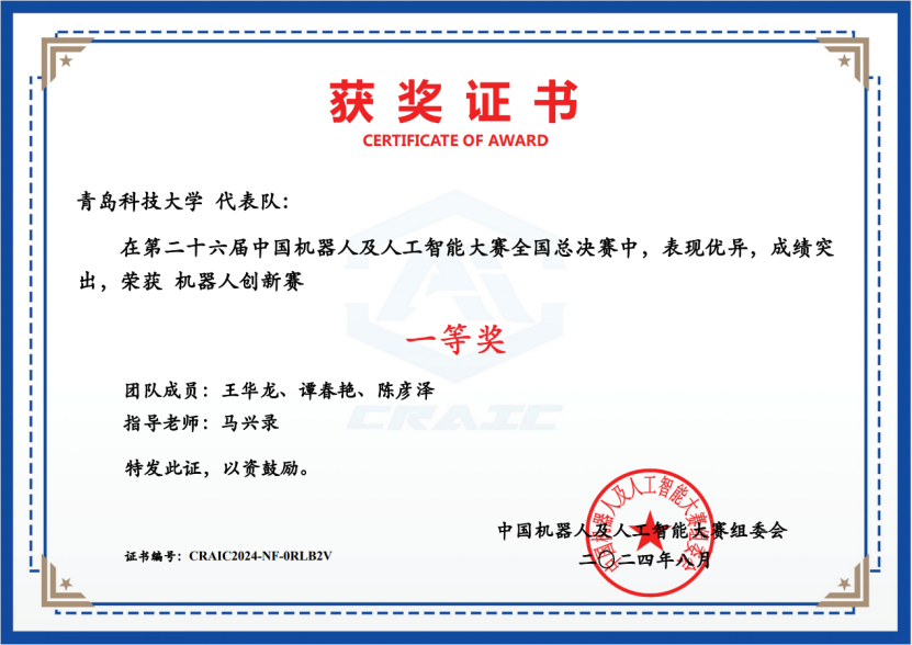 学生获奖——第二十六届中国机器人及人工智能大赛全国总决赛--机器人创新赛一等奖