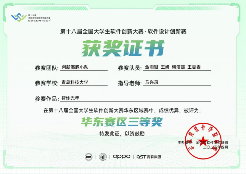 学生获奖——第十八届全国大学生软件创新大赛华东赛区三等奖