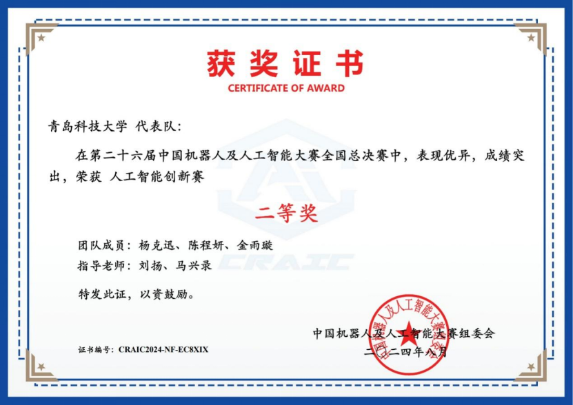 学生获奖——第二十六届中国机器人及人工智能大赛全国总决赛人工智能创新赛二等奖-2