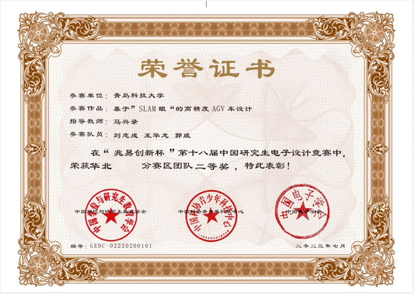 学生获奖——“兆易创新杯”第十八届中国研究生电子设计竞赛荣获华北分赛区团队二等奖
