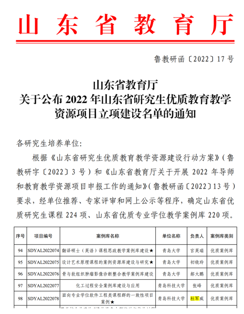 教研项目——2022 年山东省研究生优质教育教学资源项目