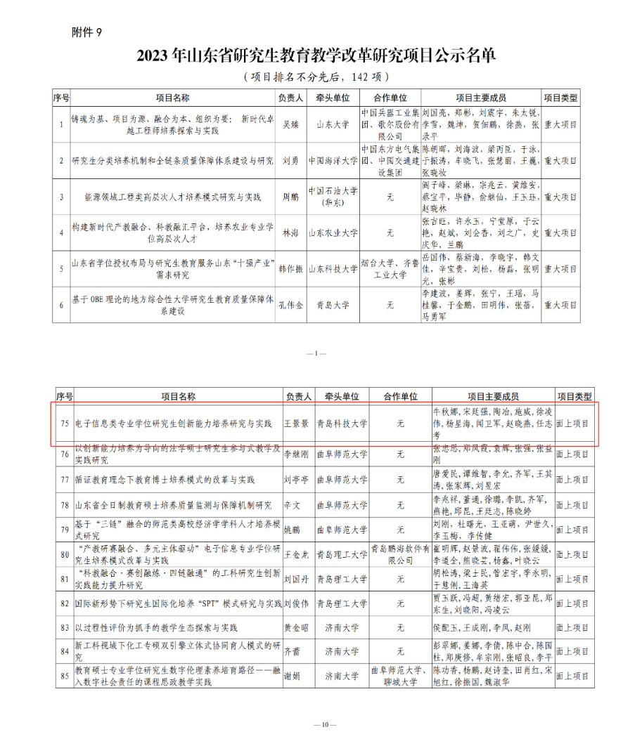 教研项目——2023年山东省研究生教育教学改革研究项目